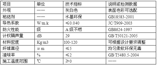 无机纤维喷涂性能指标